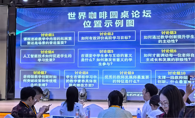 “世界咖啡”圆桌论坛则聚焦“人工智能时代教师发展师的教学创新”,围绕理念认知、技术应用、课程设计等八个维度,通过三轮轮换讨论机制汇聚多元视角。参会者精准剖析一线教学痛点,最终形成可落地的解决方案图谱。