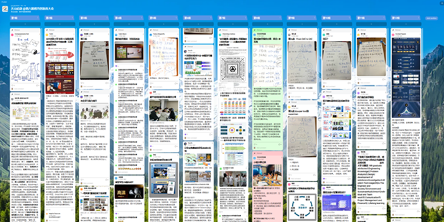在“天山论剑”环节,参会者提前通过Padlet平台分享教学创新案例,线下相聚时以“N对1”方式深入研讨。如将AI助教融入本科教学、用豆包激活研究生苏格拉底式提问的探索,以及多组教师围绕“AI协同生态”“真实问题驱动能力提升”等主题的实践分享,让“AI+教育”的落地路径愈发清晰。同时在讨论中,结合教学实际,分享了“AI技术在工程实践课程中的应用探索”,引发对“专业课程与AI工具融合边界”的热烈探讨。