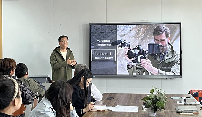 活动现场,学院团队前期已与俱乐部深度沟通教学需求,俱乐部团队携带索尼最新摄影摄像设备展开精准讲解——从微单机型功能、院线级摄影机特色解析到影像基础原理、电影镜头与配套设备。