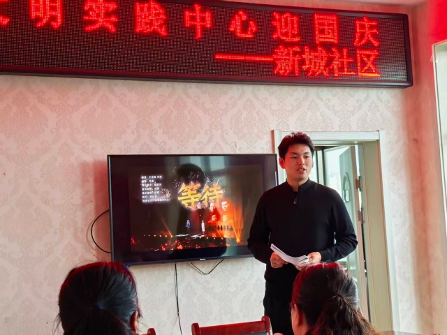 宣讲活动在讲“两弹元勋”邓稼先的故事《等待》视频中拉开序幕。宣讲团指导老师解育一首先上台,向社区居民介绍了宣讲团的成立初衷与发展历程。“我们希望通过讲述军旅故事、普及国防知识,让更多人了解军人的奉献与担当,让青春与家国同频共振。”指导老师解育一的话语真挚有力,瞬间拉近了与现场观众的距离。