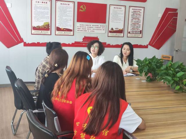 9月18日,青春军旅宣讲服务队队长何鸿梅、副队长王怡璇及指导老师解育一、韩雅琳一行回访新城区基地。
