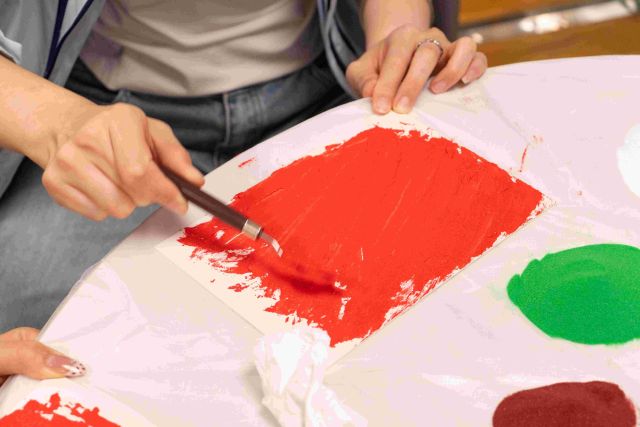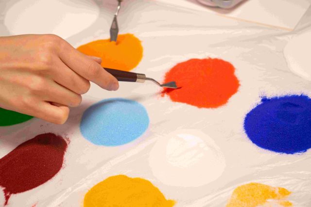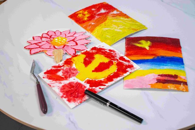 承接夏日的宁静与内省转向国庆的热烈与磅礴。组织者大胆引导参加者,以沙粒替代传统纸浆,举办了“沙绘山河”主题创作。他们以指尖为笔,各色沙粒为墨,尽情挥洒创意。五星红旗、巍峨长城等国家象征,在大家小心翼翼的填充、涂抹和塑形下,以独特的颗粒感和立体效果跃然板上。
